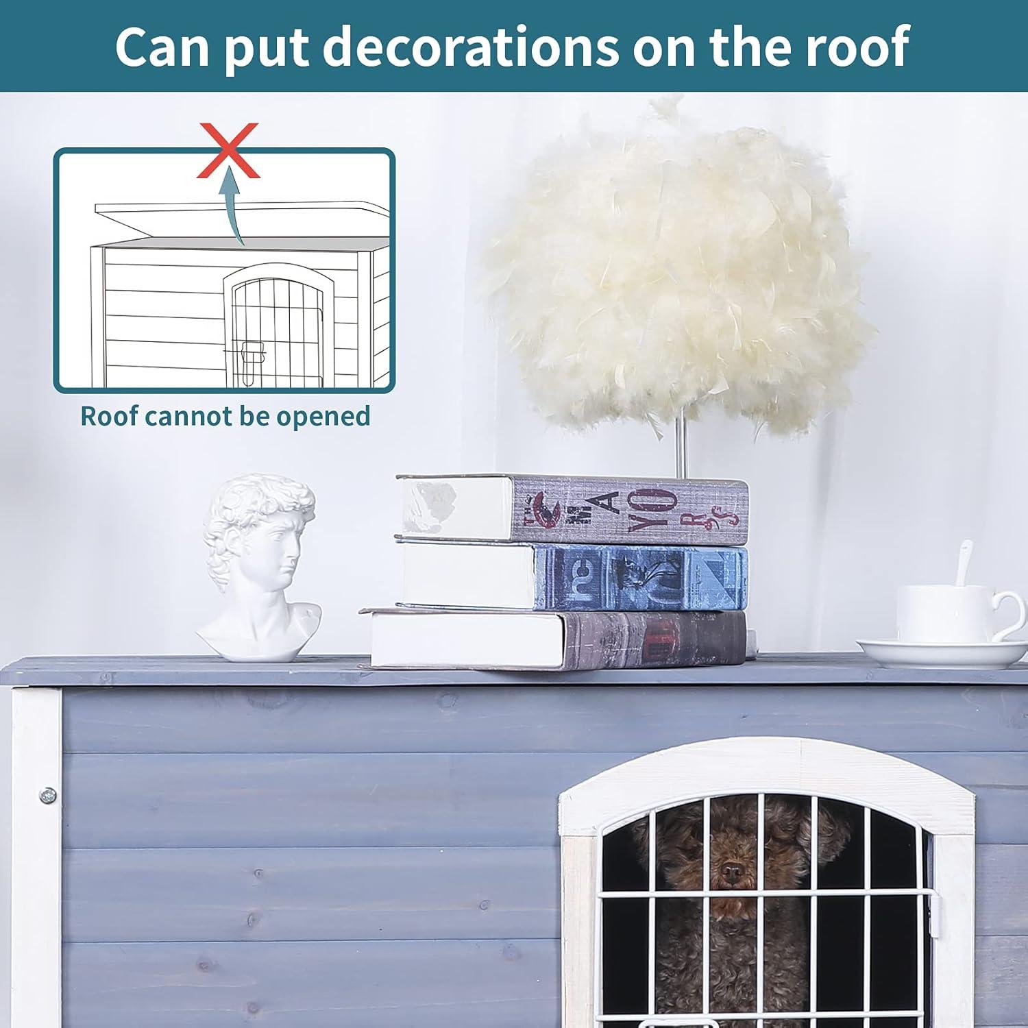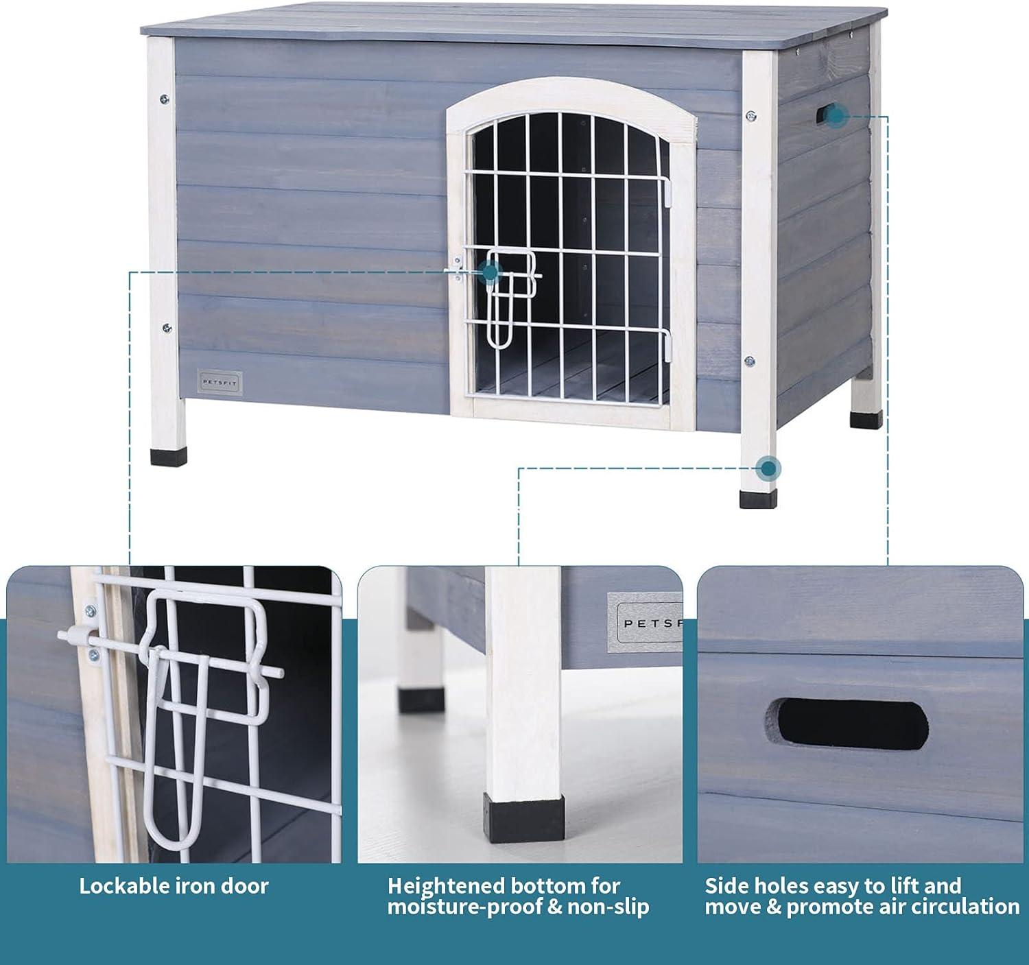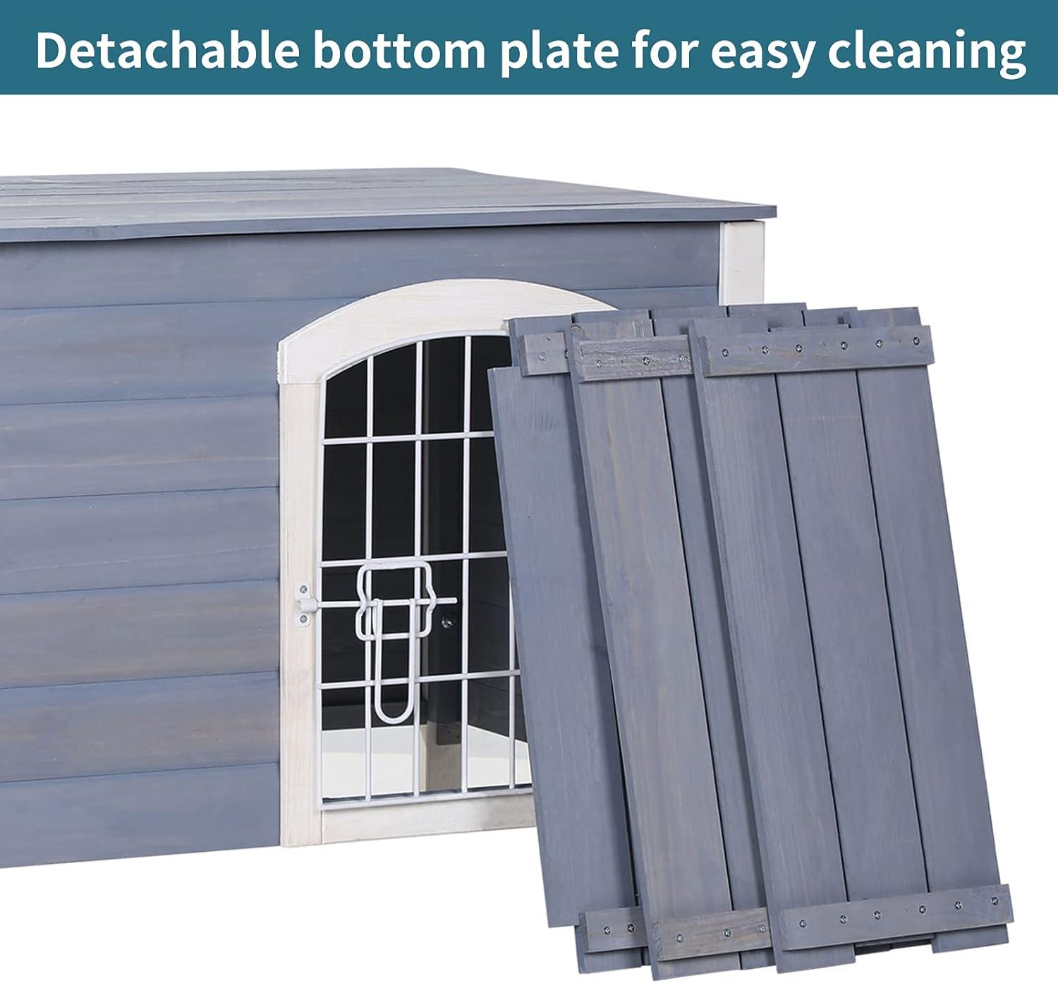 Petsfit Large Dog House Outdoor, Wooden Shelter for Extra Large Breeds Up to 200lbs, Weatherproof Roof, Removable Bottom Panel & Elevated Floor, 47-Inch, Natural Brown(31.5" Grey - Indoor Use)