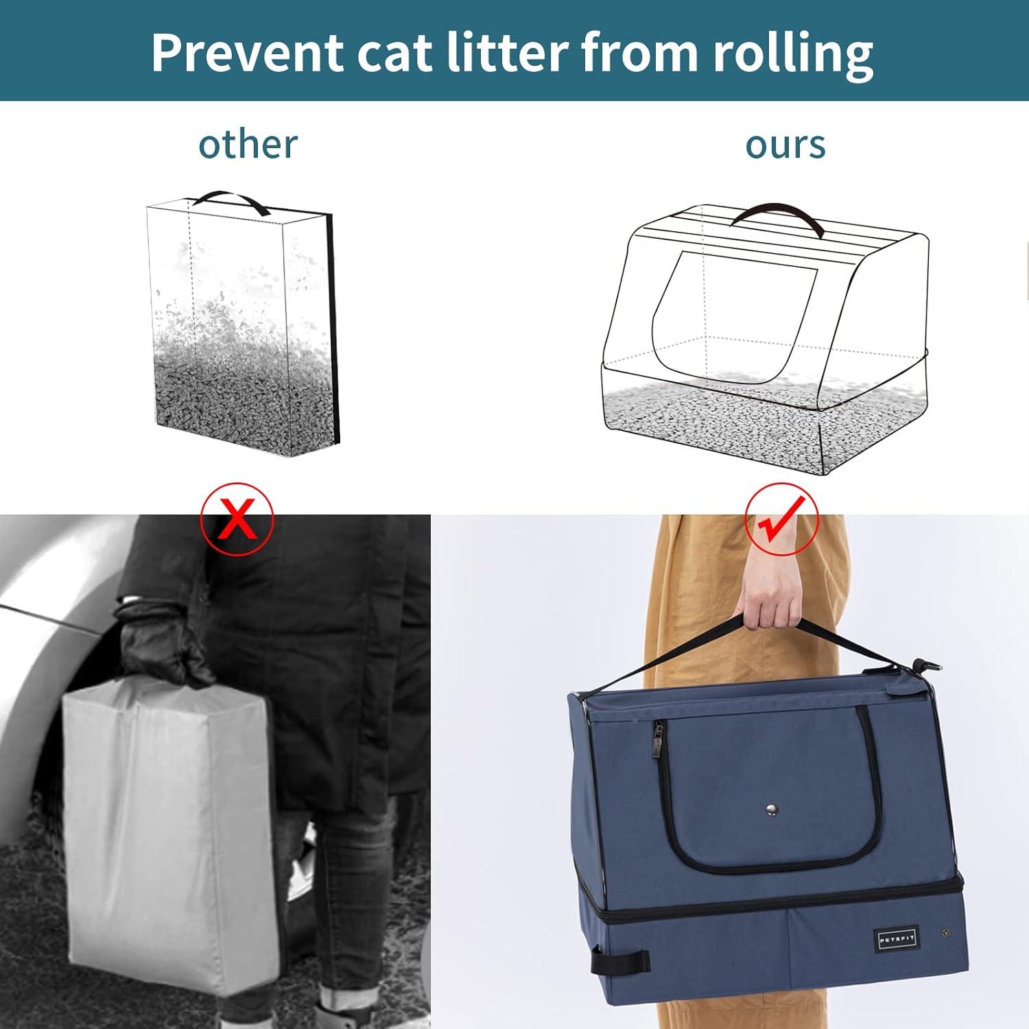 Portable cat crate comes with a foldable litter box, a soft cushion and a carrying bag, the litter box occupies very little space, easy to carry, can keep clean and tidy while traveling.