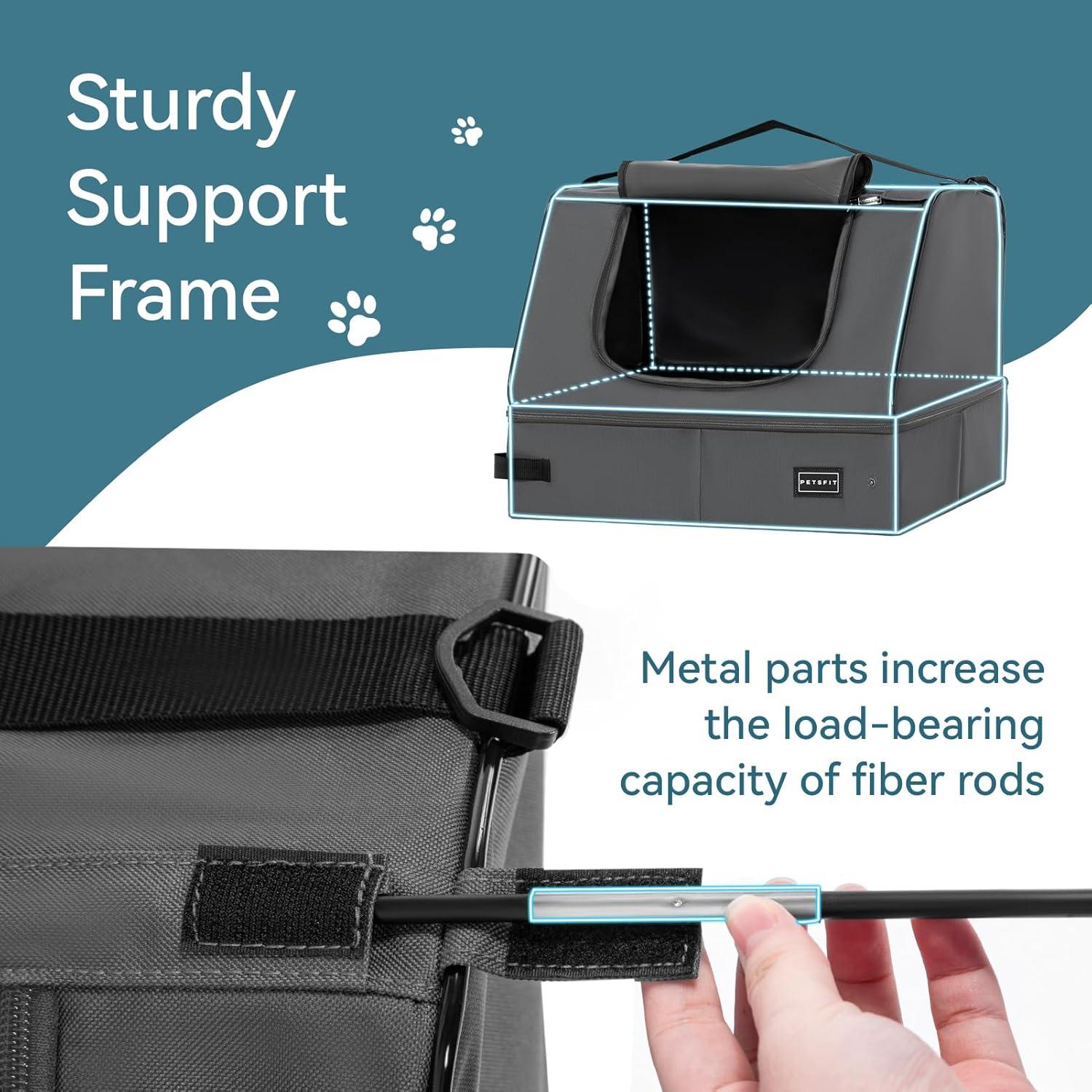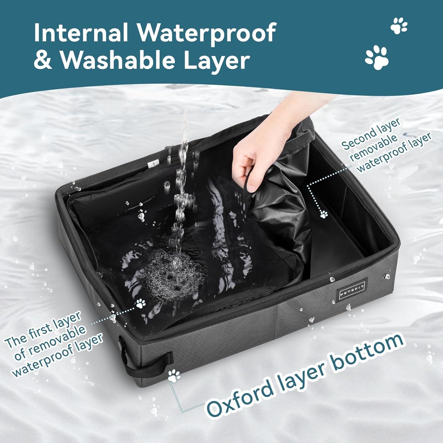 Portable cat crate comes with a foldable litter box, a soft cushion and a carrying bag, the litter box occupies very little space, easy to carry, can keep clean and tidy while traveling.