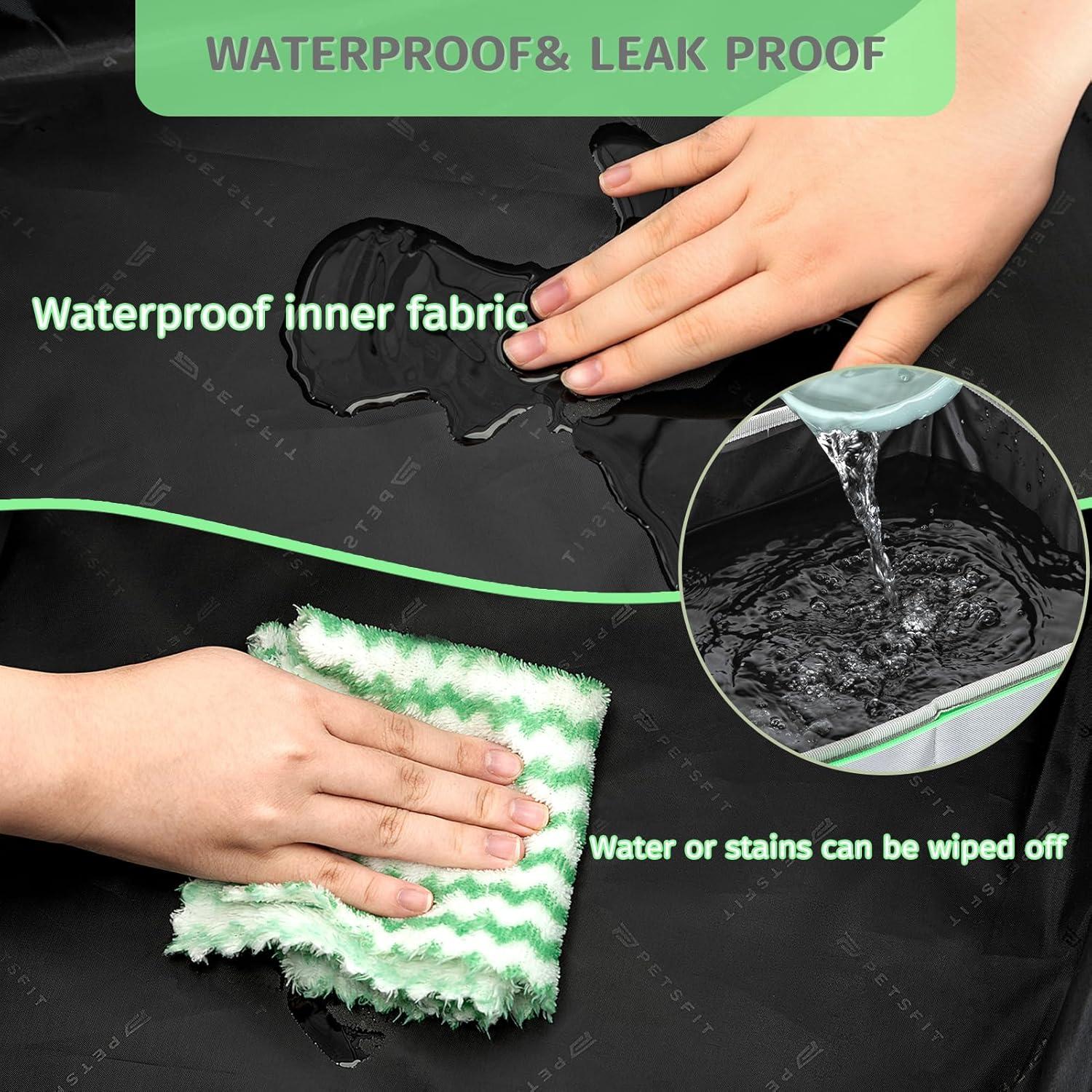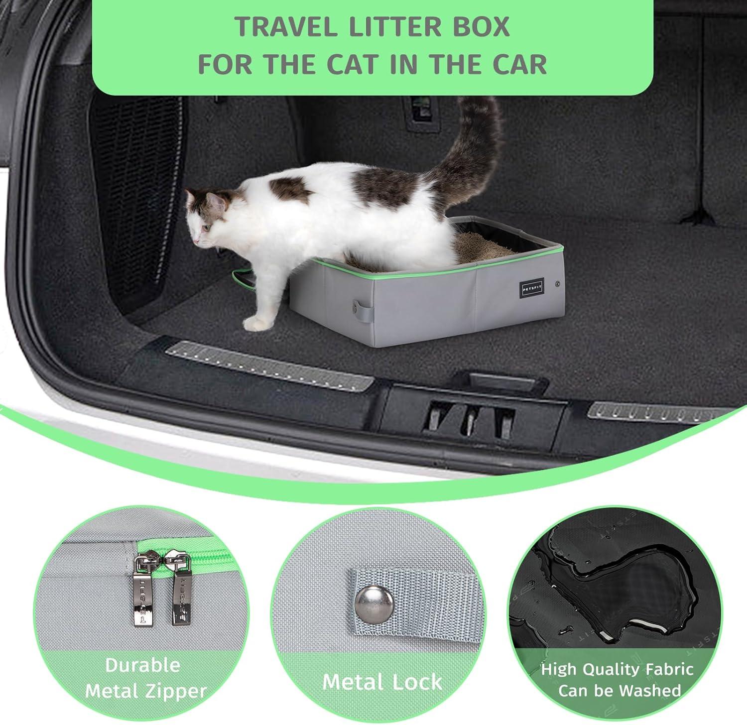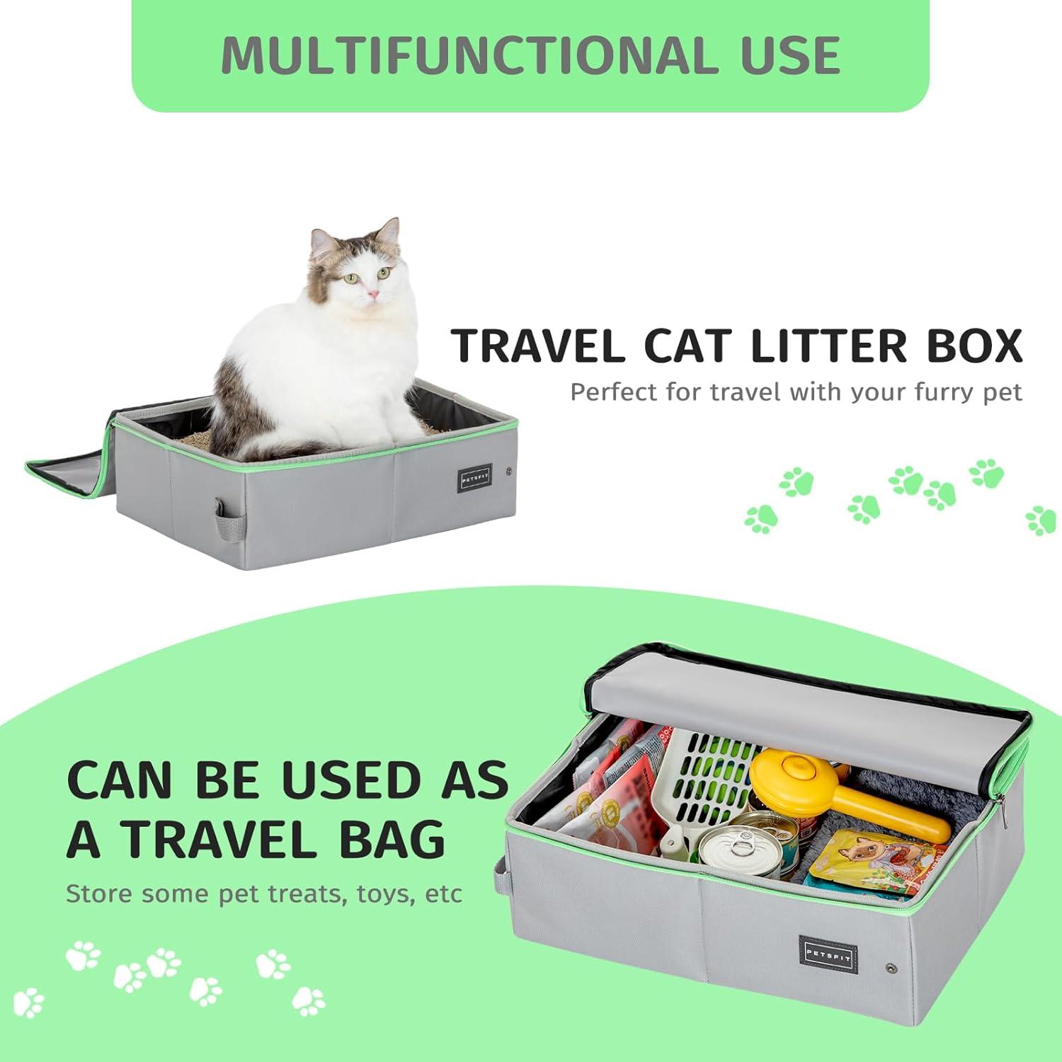 PETSFIT Portable Cat Litter Box – Removable 2-Layer Leak-Proof Lining, Scratch-Resistant Fabric with Sturdy Support Frame, Travel & Collapsible Cat Litter Box Black(Army Green)